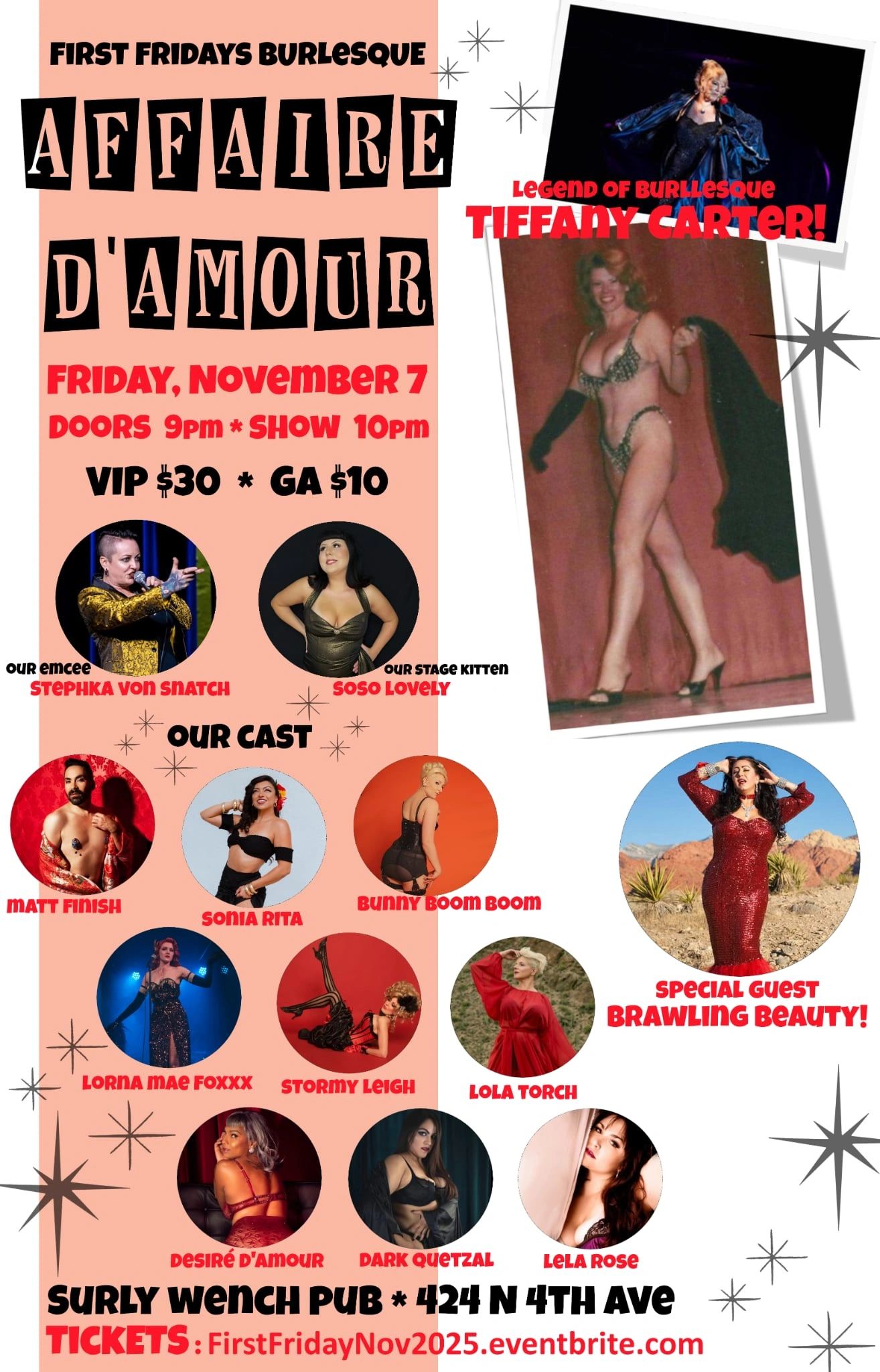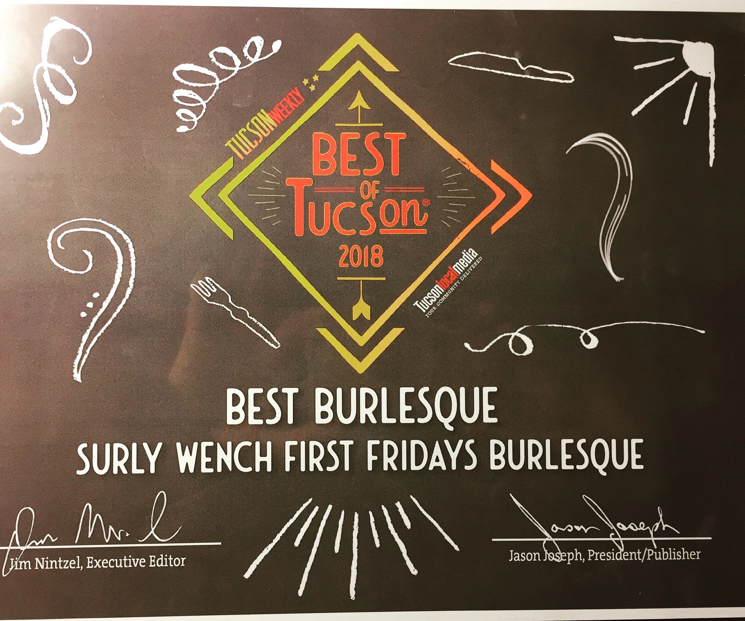 Our monthly show, First Fridays Burlesque, is an unique experience. A different producer each month puts together their own show with their vision. You never get the same show twice!